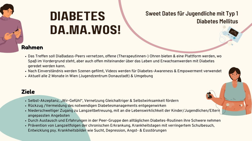 Unser Team aus Dr. Christine Fröhlich (Ärztin, Diabetesberaterin), Yvonne Fischer (Psychologin) und ich (Lena Gießwein, Diätologin) hat zusammen bereits Erfahrung in der Betreuung von Jugendlichen mit Diabetes Typ 1 in der stationären Reha gesammelt. Jetzt wollen wir ambulant ein gut erreichbares Angebot aufbauen, um DiaBadasses, die den ohnehin schon stressigen und oftmals sehr herausfordernden Alltag mit Diabetes Typ 1 Management meistern, eine Anlaufstelle für Austausch und gemeinsame Erlebnisse zu bieten.